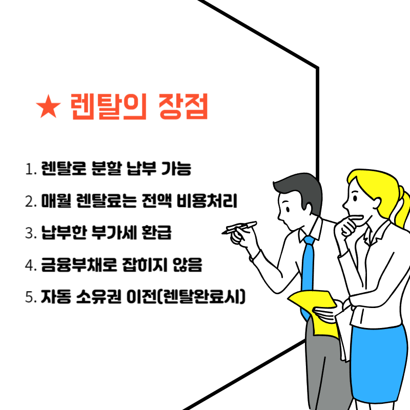 그리고, 모든 렌탈비용은 비용처리가 가능하셔서 절세효과도 있다는 점.