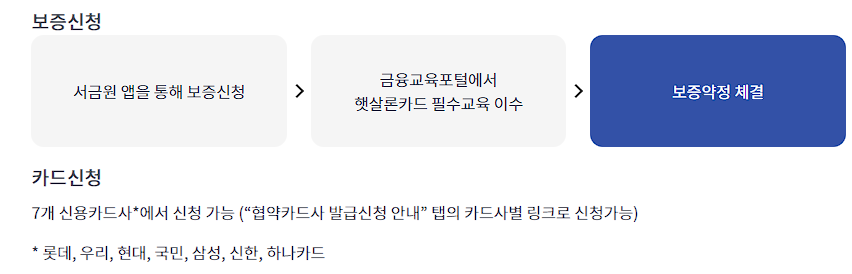 햇살론카드를 신청하기 위해서는 다음 절차를 따르셔야 합니다.